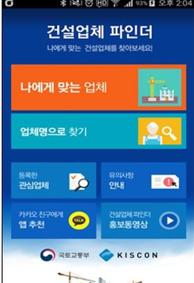 이번에 보급되는 ‘건설업체 파인더’ 앱은 등록말소, 영업정지, 과징금 처분 등의 이력이 있는 업체 정보가 나타날 수 있도록 하여, 신인도가 우수한 업체를 검색 가능하다.