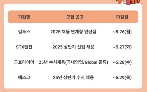 인크루트는 상반기 채용의 막바지에 접어든 5월, 주요 기업들의 인턴 및 신입사원 모집 정보를 소개하며 취업 준비생들의 관심을 당부했다.